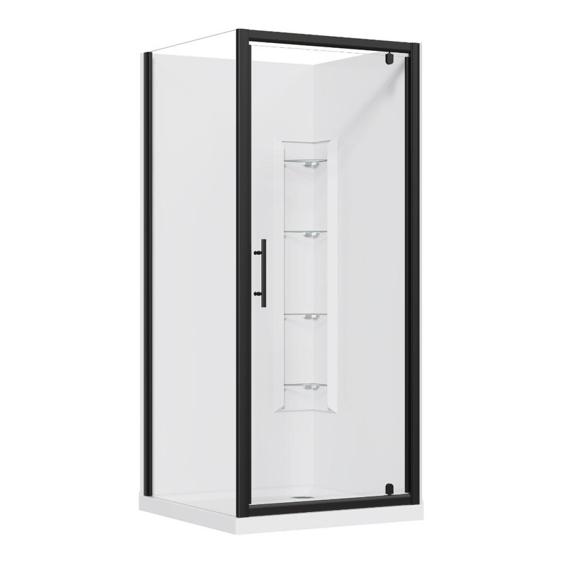 - Brighton Offset Waste Wall Liner Corner Moulded 1000 x 1000mm 2 Sided Black