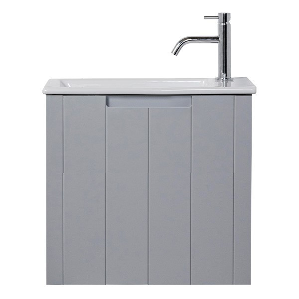 The Camden Mini vanity is aptly named for its modern tongue and groove design. The matte white or matte custom colour painted finish then creates a relaxed feel, to contrast the structural lines.