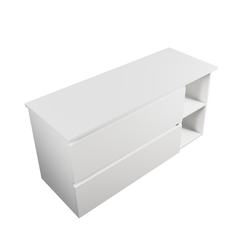 - Carlton Module Wall Hung Vanity 1200mm 2 Drawer Wall Hung Cabinet 900mm Gloss White + 300mm Shelf On The Right