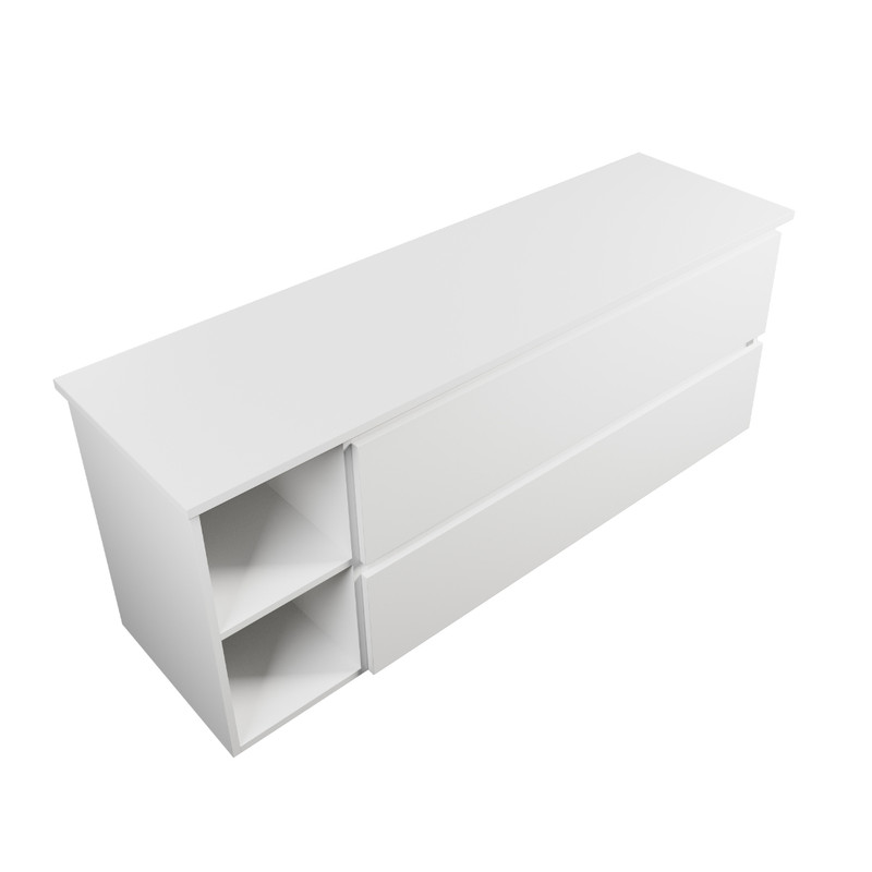 - Carlton Module Wall Hung Vanity 1500mm 2 Drawer Wall Hung Cabinet 1200mm Gloss White + 300mm Left Hand Shelf